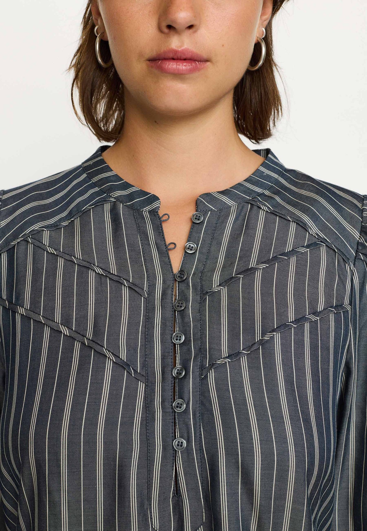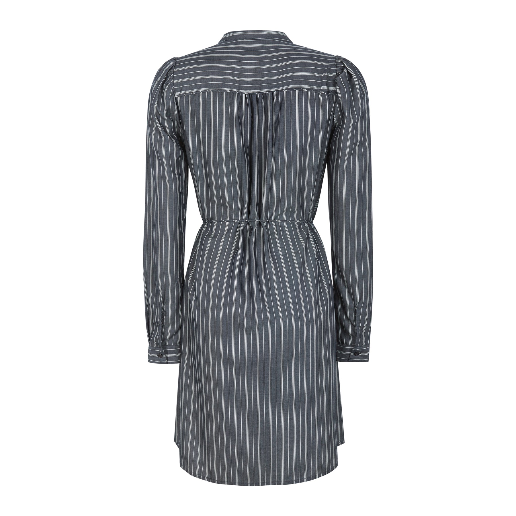 The SRCharlotte Dress in Total Eclipse Stripe is a midi-length silhouette with a clean, streamlined cut designed for versatile wear. Inspired by twilight tones and urban minimalism, it transitions from desk to dinner with effortless ease. Woven from 100% Lyocell, it offers a soft, breathable drape that flatters without stiffness.
