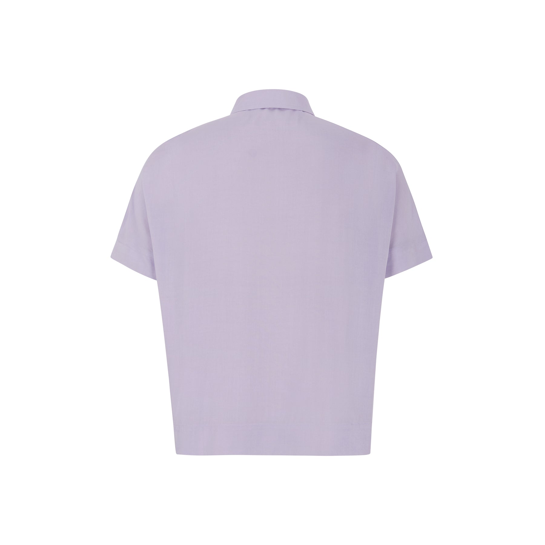 Crafted with short sleeves, a classic shirt collar, a hidden button closure, and wide shoulders.