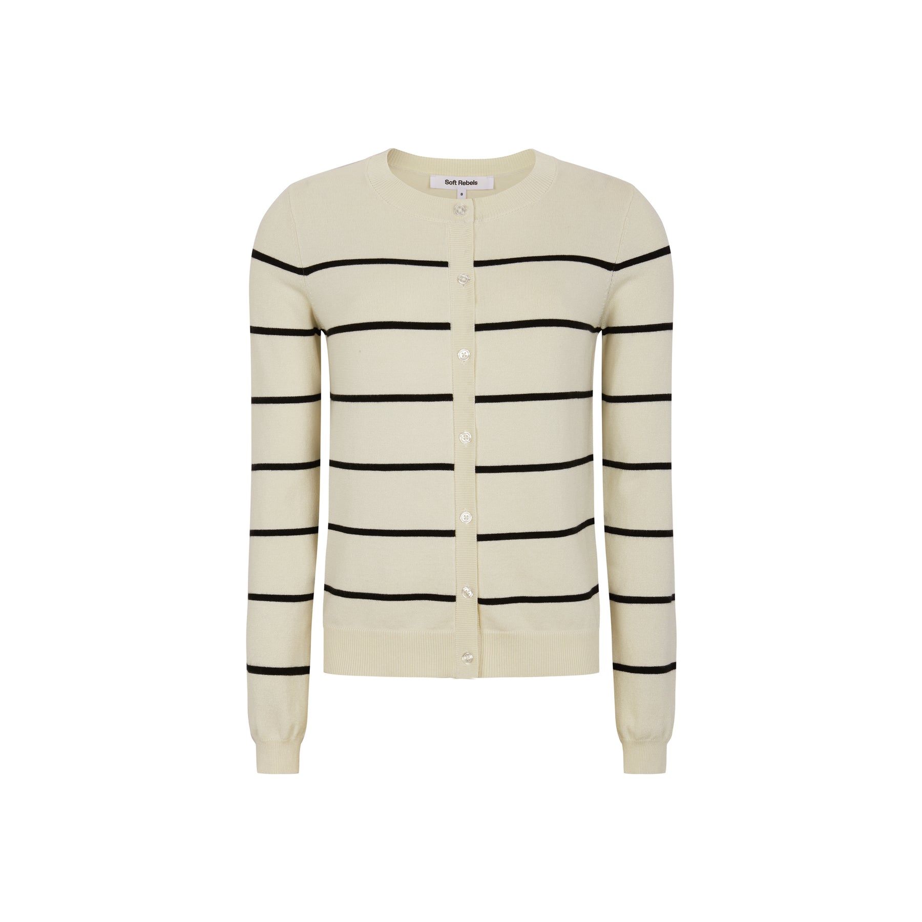 SRMarla Cardigan Stripe Knit - Arctic Wolf offers a compact, stripe-knit cardigan designed for easy layering. Inspired by crisp winter days, its striped pattern pairs clean lines with a soft, breathable knit. For everyday wear, the silhouette drapes smoothly over the body, staying comfortable from morning to evening. Crafted from 80% viscose (LENZING™ ECOVERO™) and 20% polyamide, it strikes a balance between softness and structure.