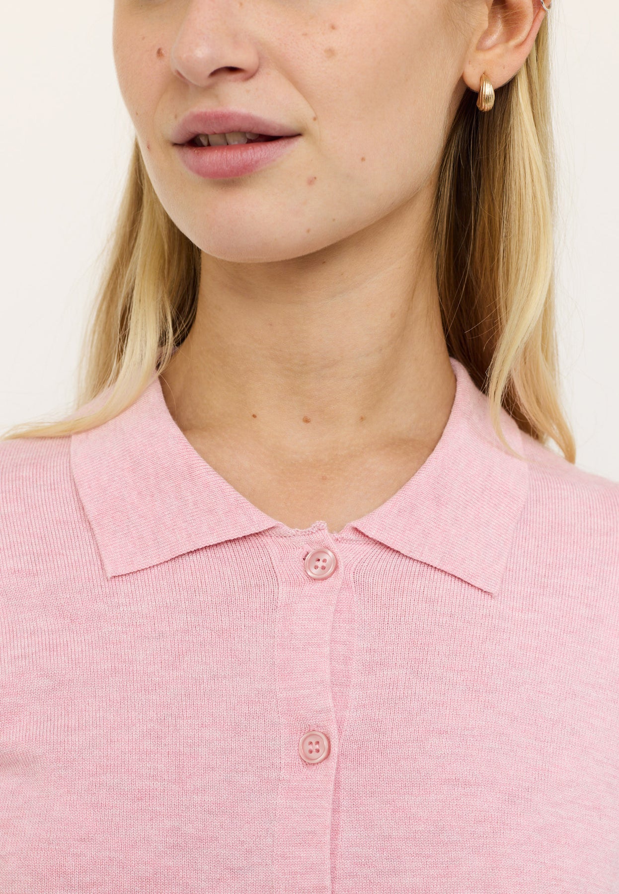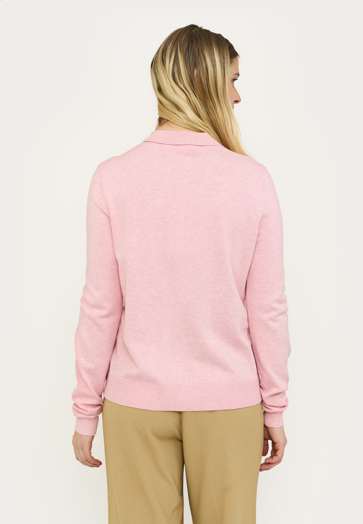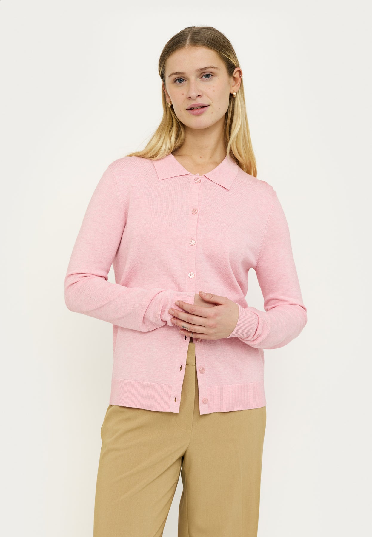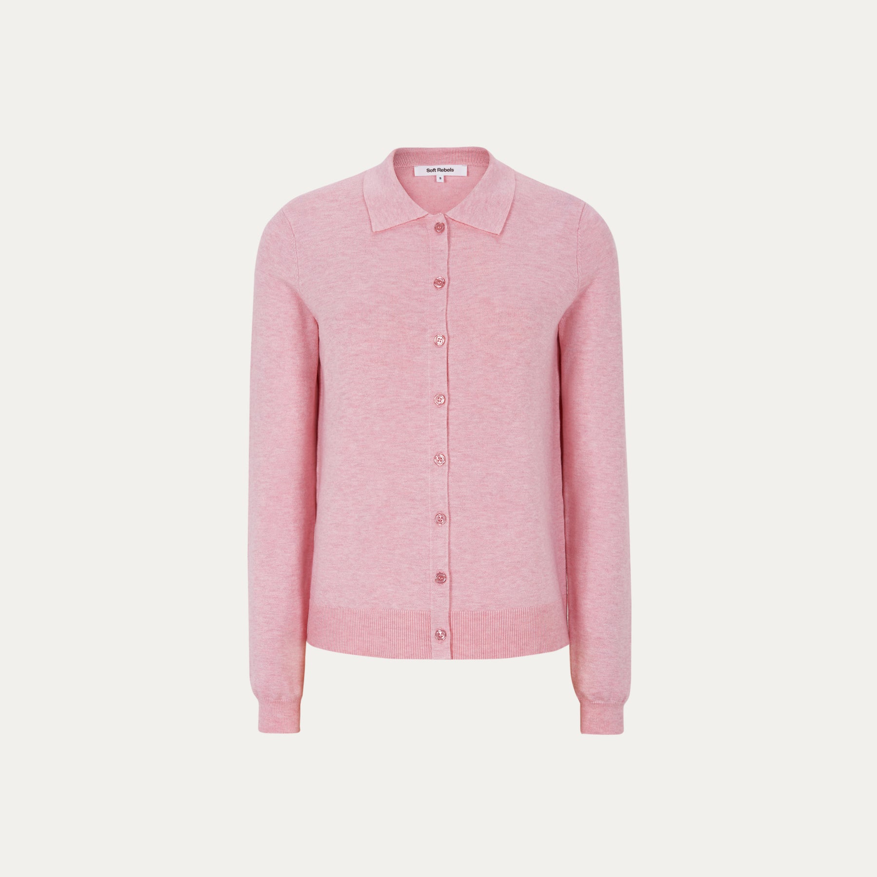 - Collar cardigan knit in Bleached Mauve Melange for versatile styling
