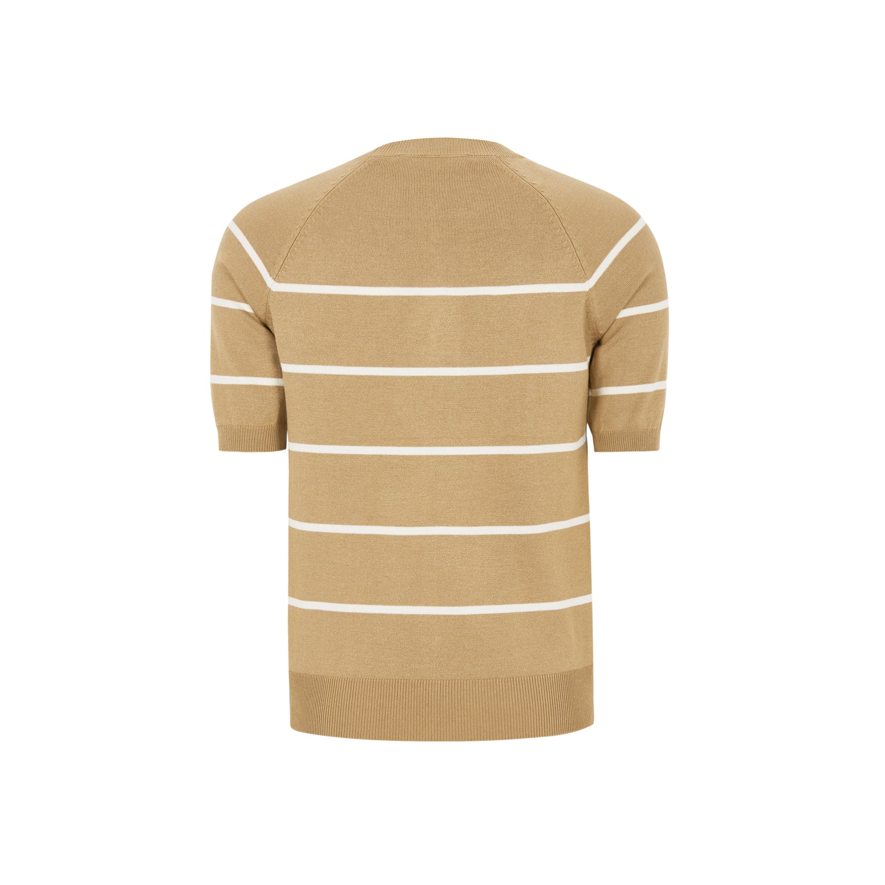 A striped short-sleeve knit that blends relaxed fit with clean, contemporary lines. Inspired by coastal textures and modern minimalism, it offers everyday versatility. Its breathable knit uses 80% viscose (LENZING™ ECOVERO™) and 20% nylon for a smooth drape.
