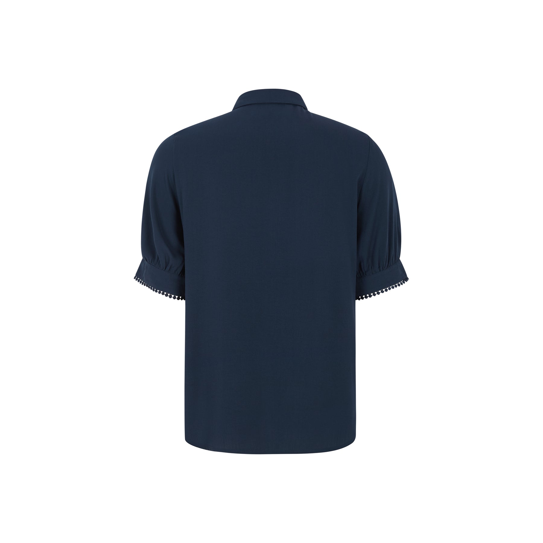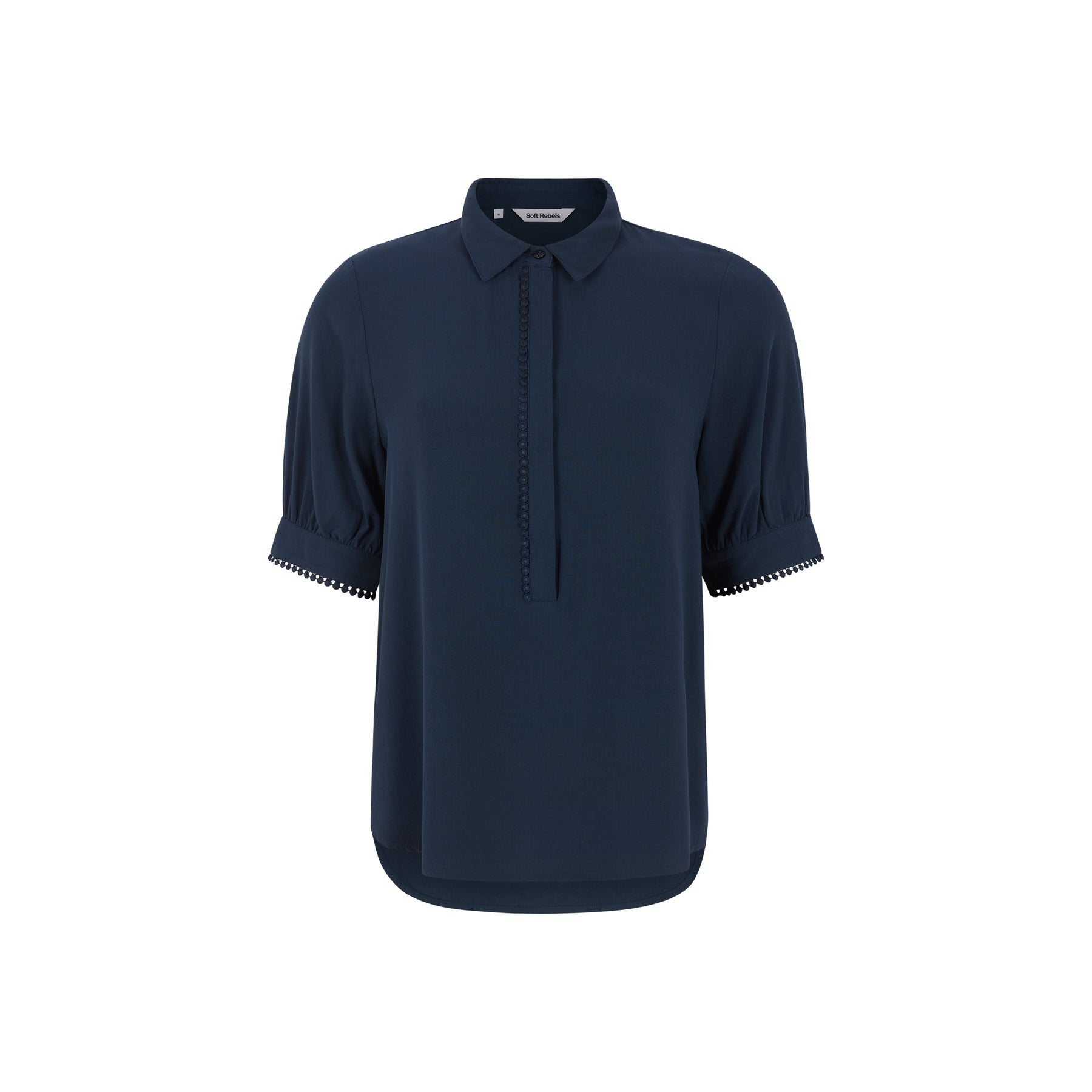 Relaxed blouse silhouette with a clean neckline for versatile styling
