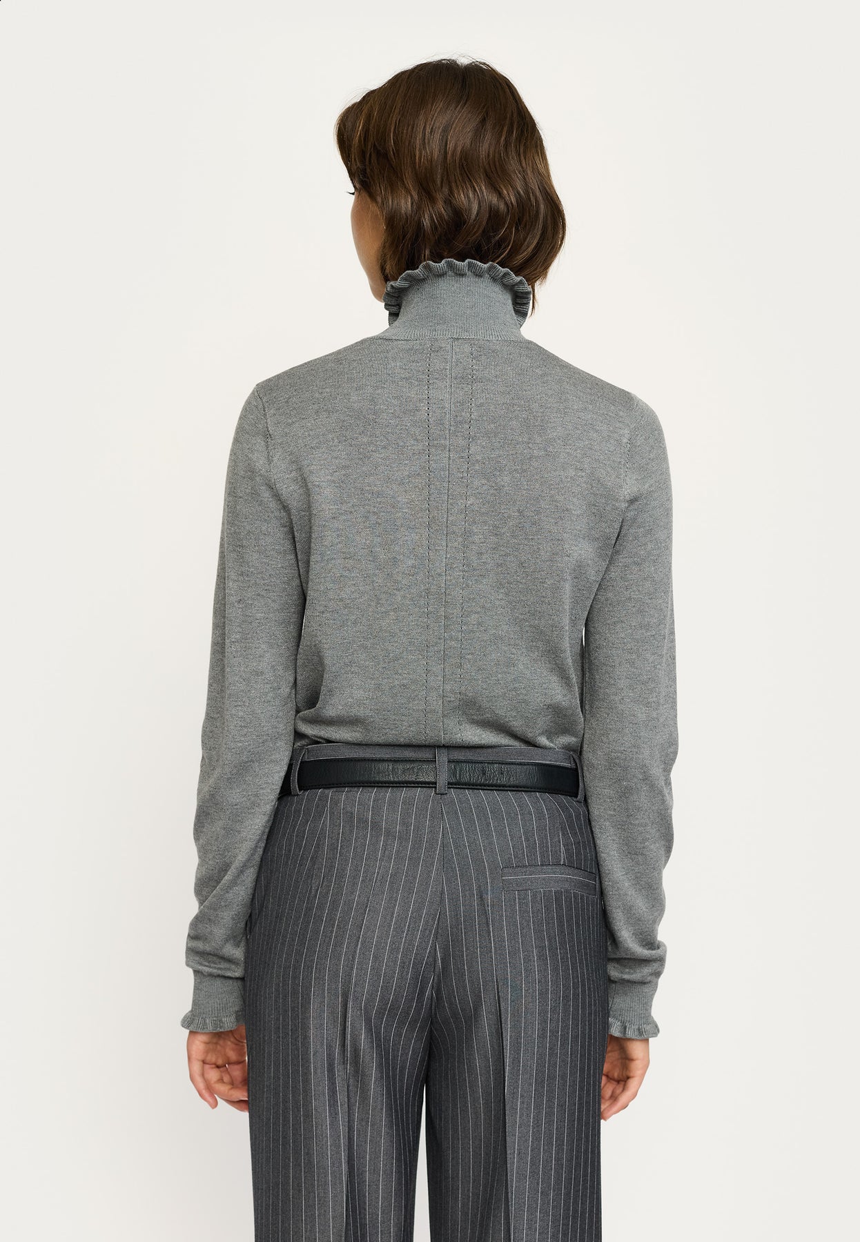 Meet the SRVibe Knit in Medium Grey Melange, a mid-weight pullover inspired by everyday versatility and relaxed tailoring. Drawing from urban minimalism, this knit is designed to bridge casual weekends and smart-casual workdays with a compact silhouette and subtle texture.