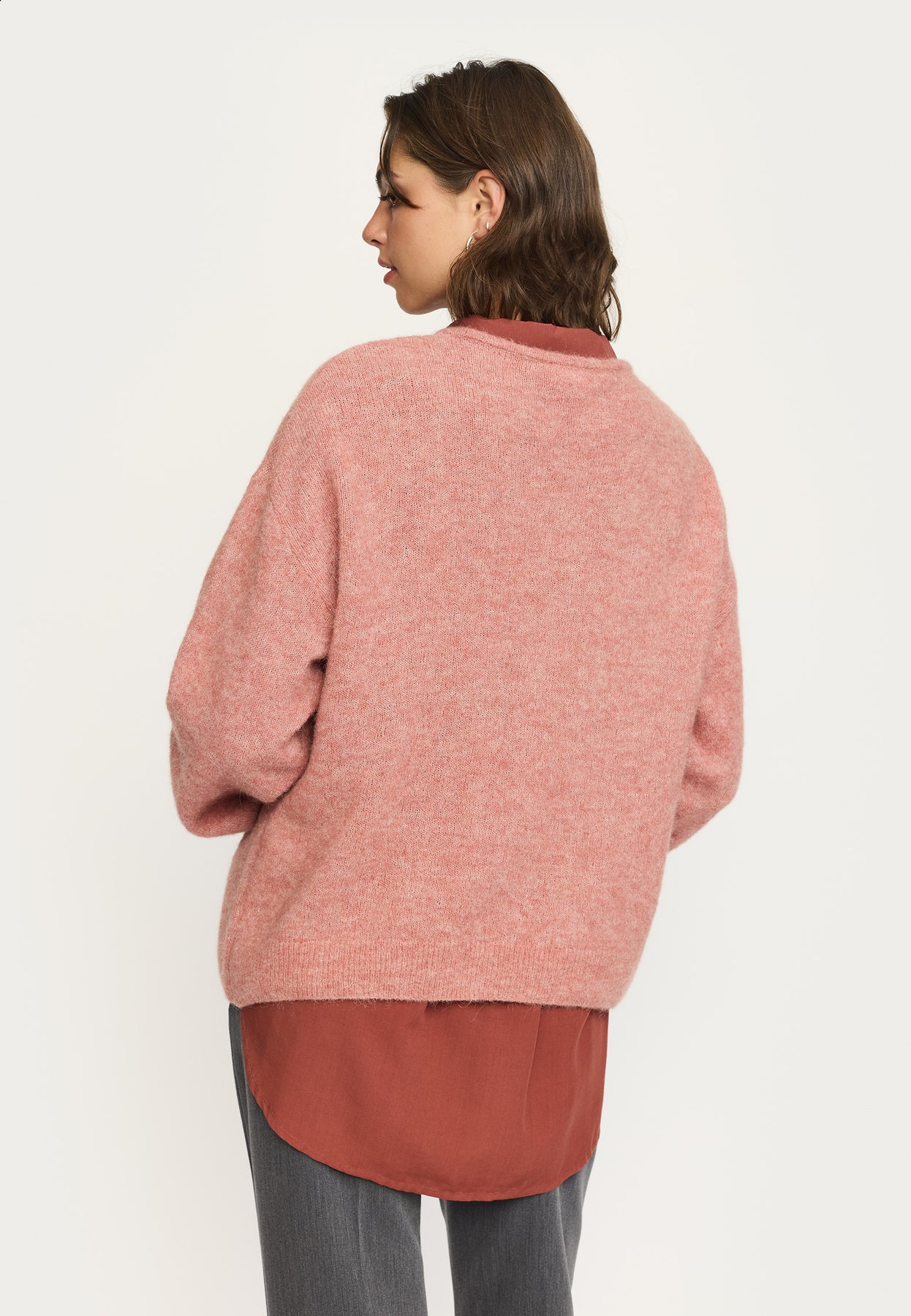Meet the SRAllison V Knit, a lightweight V-neck jumper in Rose Dawn Melange. Inspired by soft sunrises, it blends performance fibers with warmth for easy layering. The fabric combines 47% recycled nylon, 35% RWS wool, 15% alpaca, and 3% spandex for structure and stretch. A refined silhouette makes it suitable for casual and office looks, with easy polish.